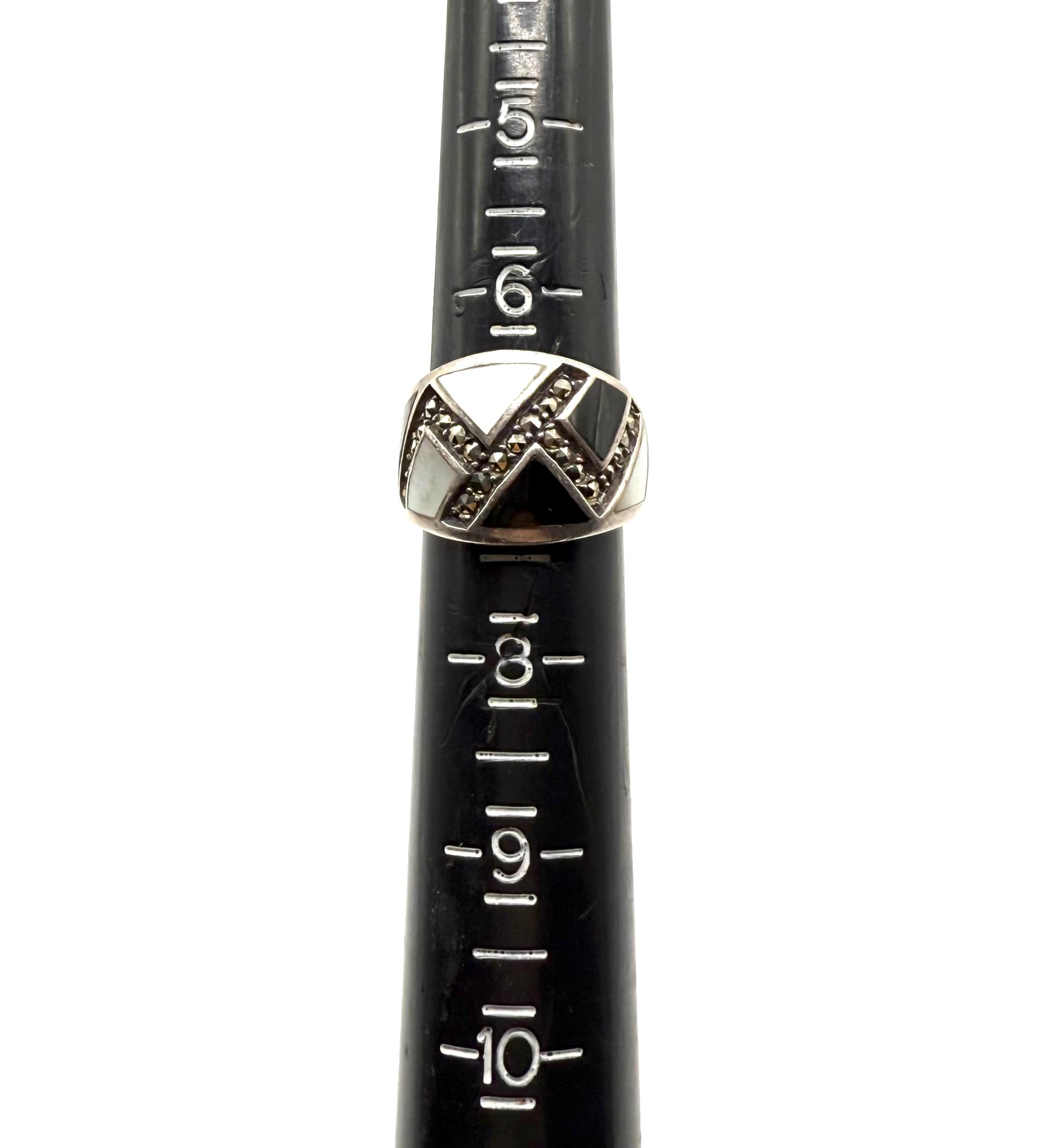 Onyx & Pearl Marcasite Trim Statement Ring