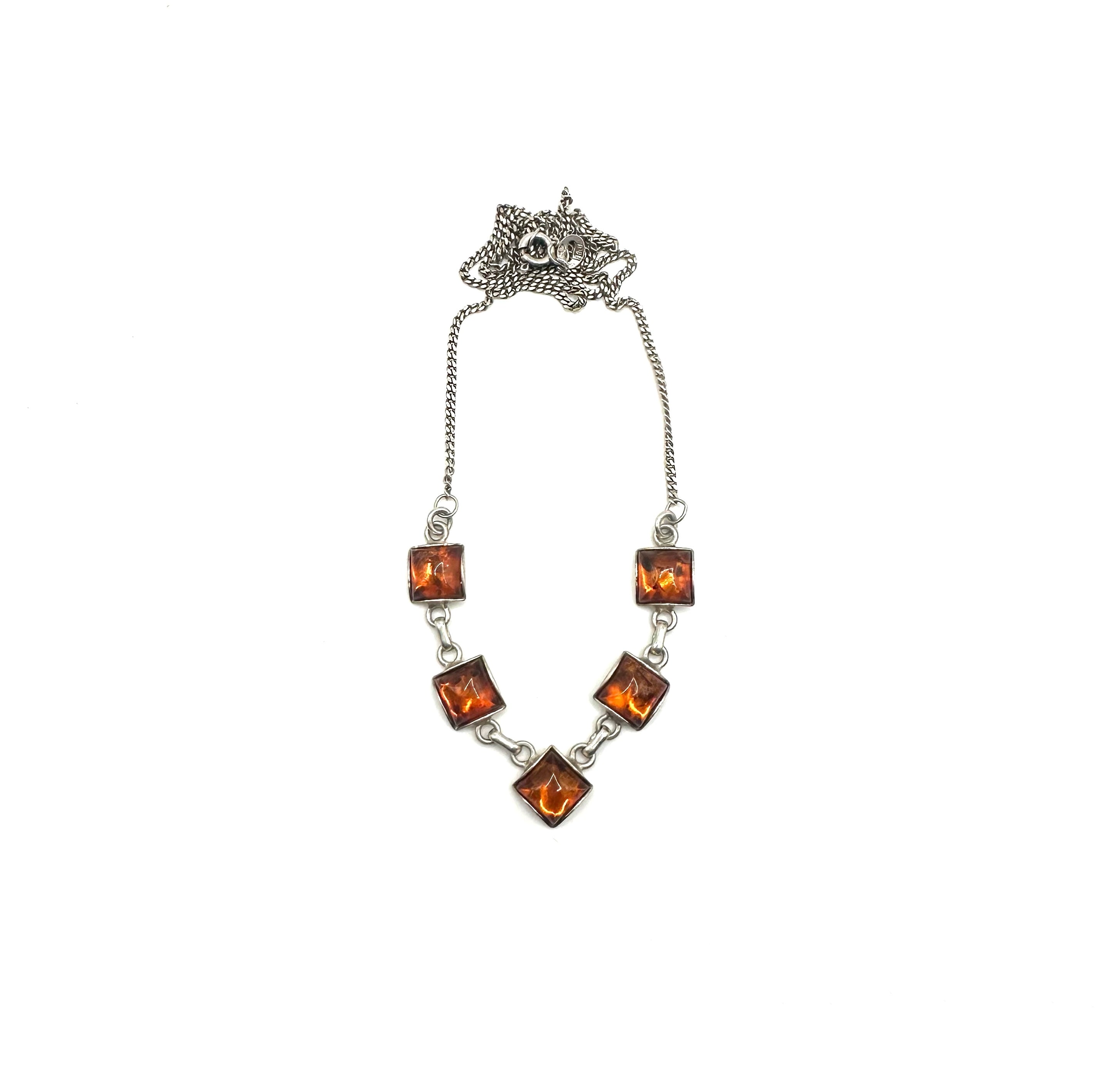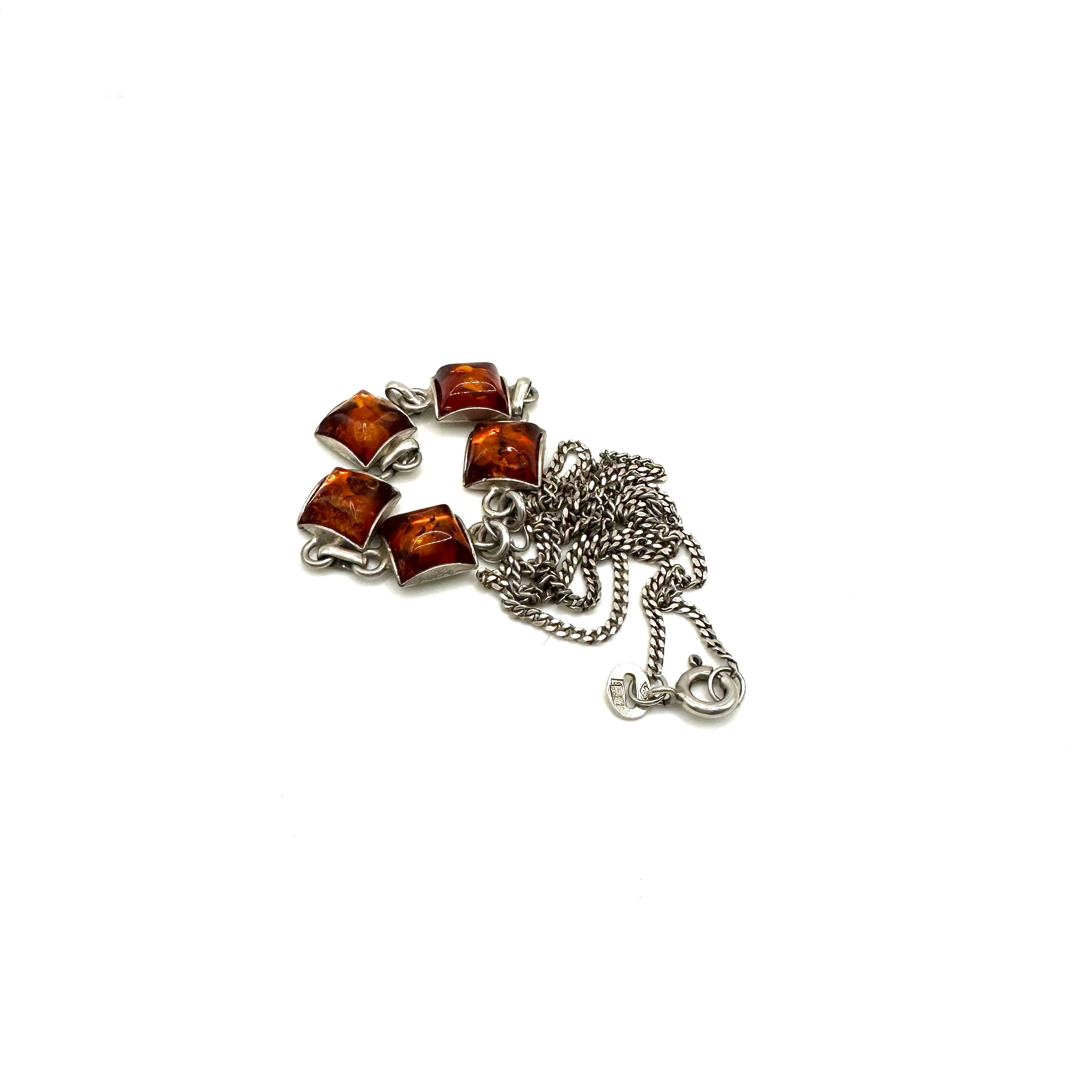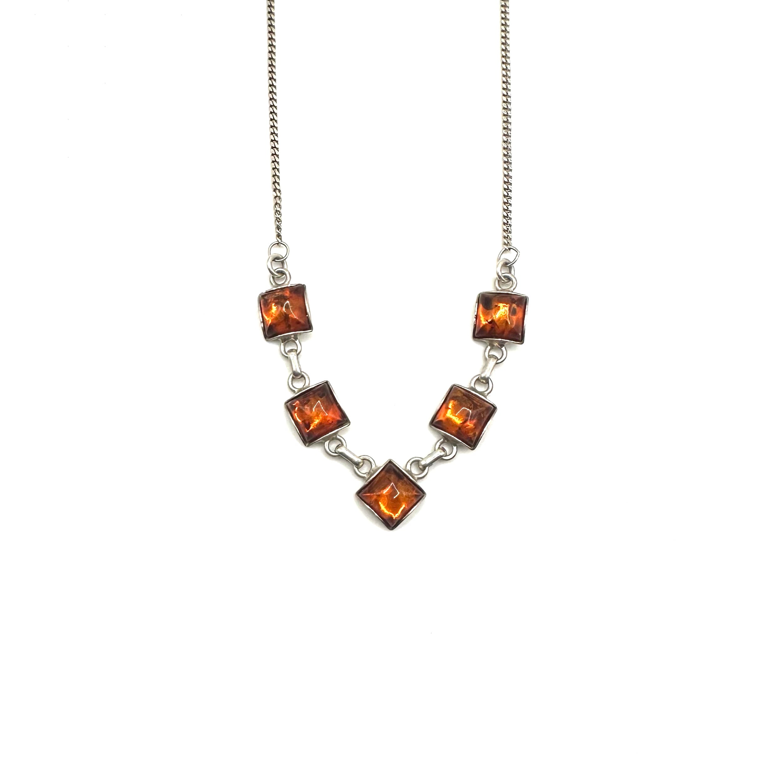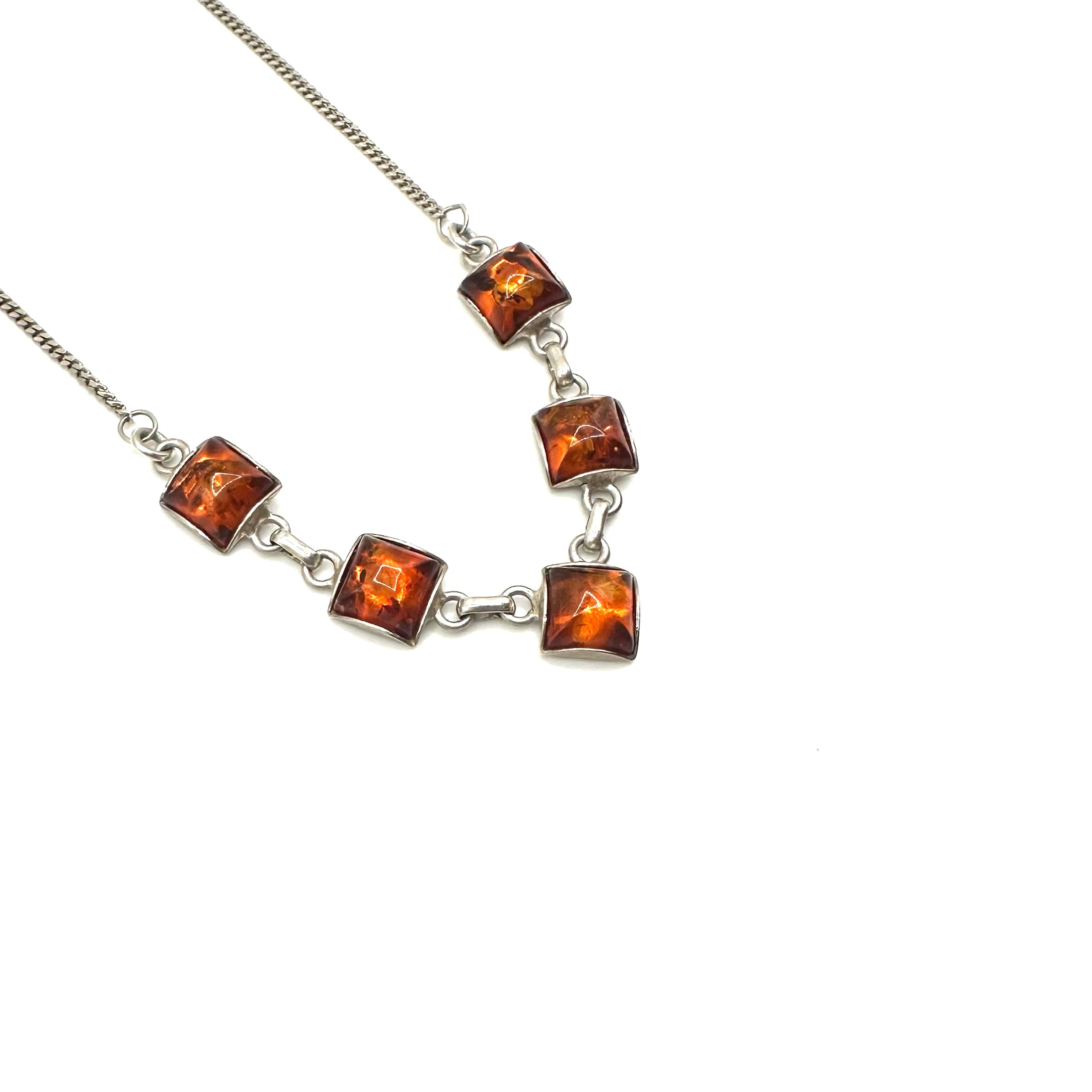 Vintage POLAND Baltic Amber Curb Chain Bib Necklace