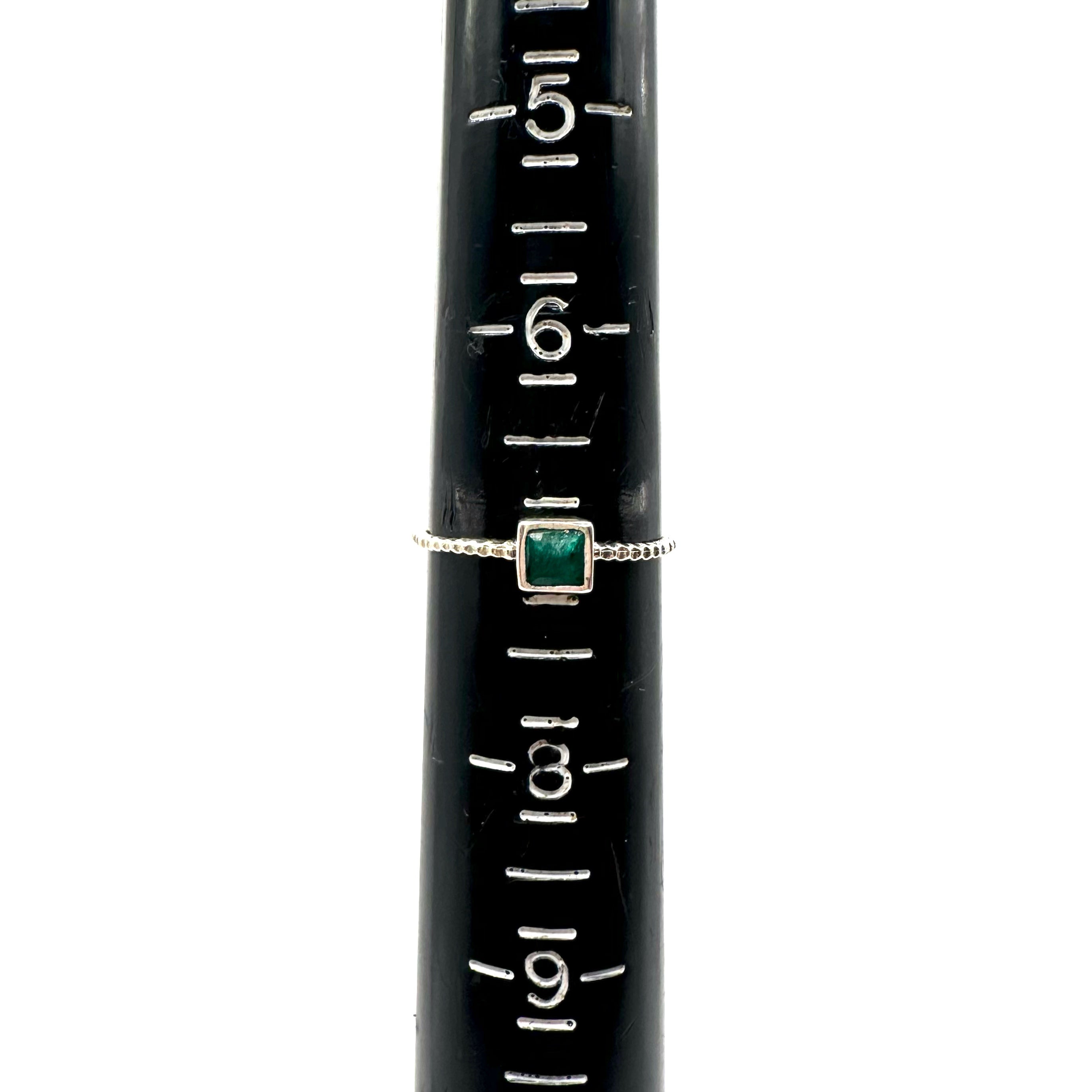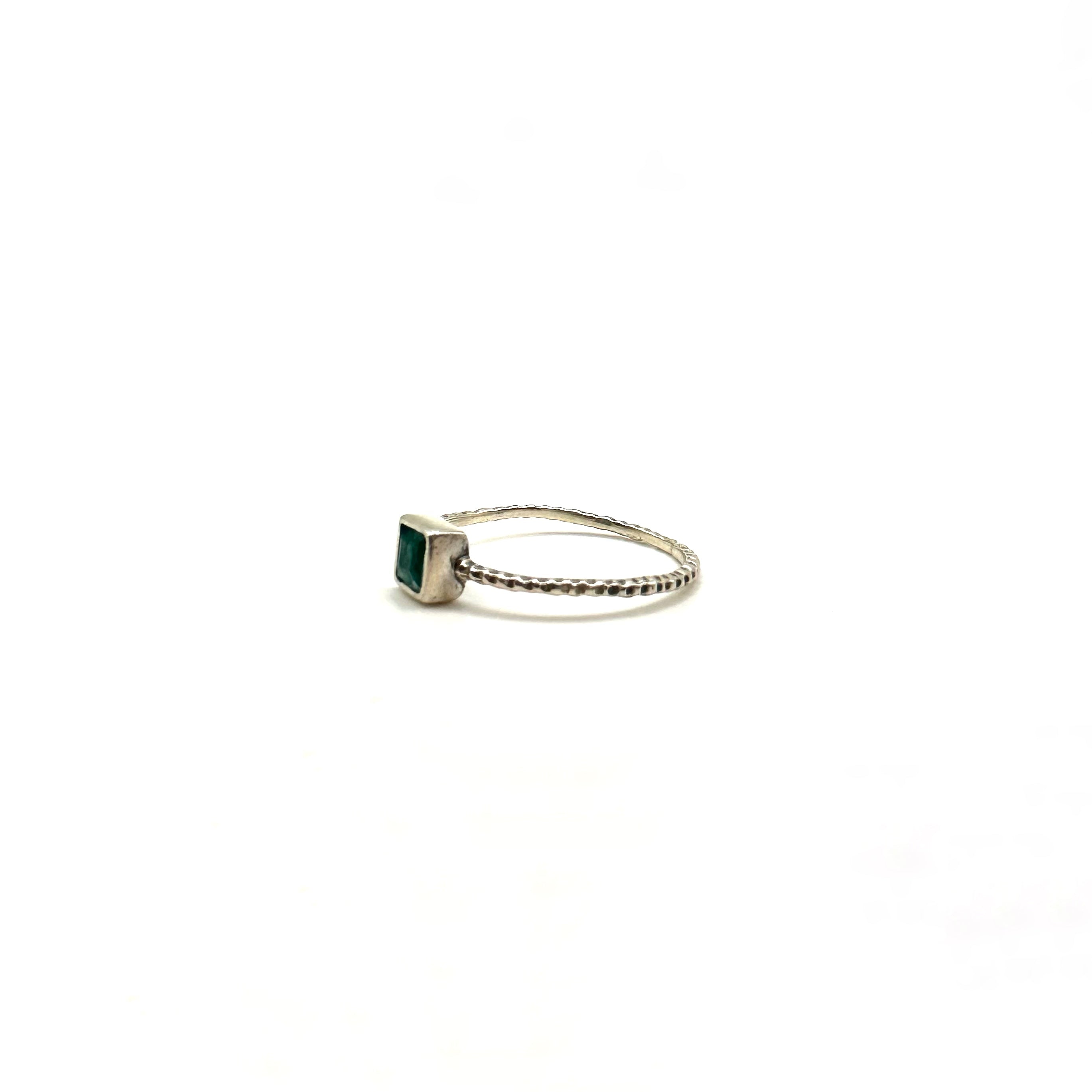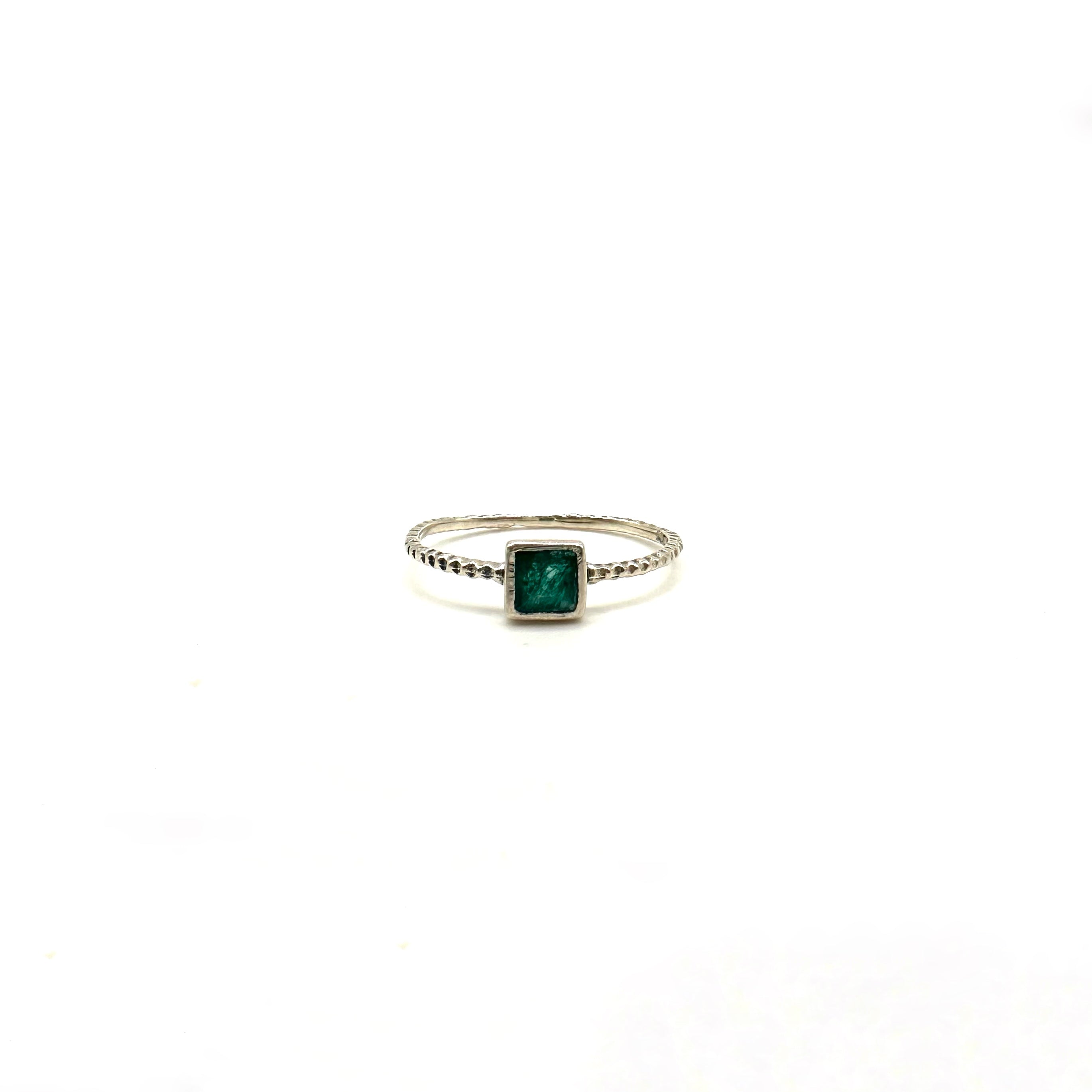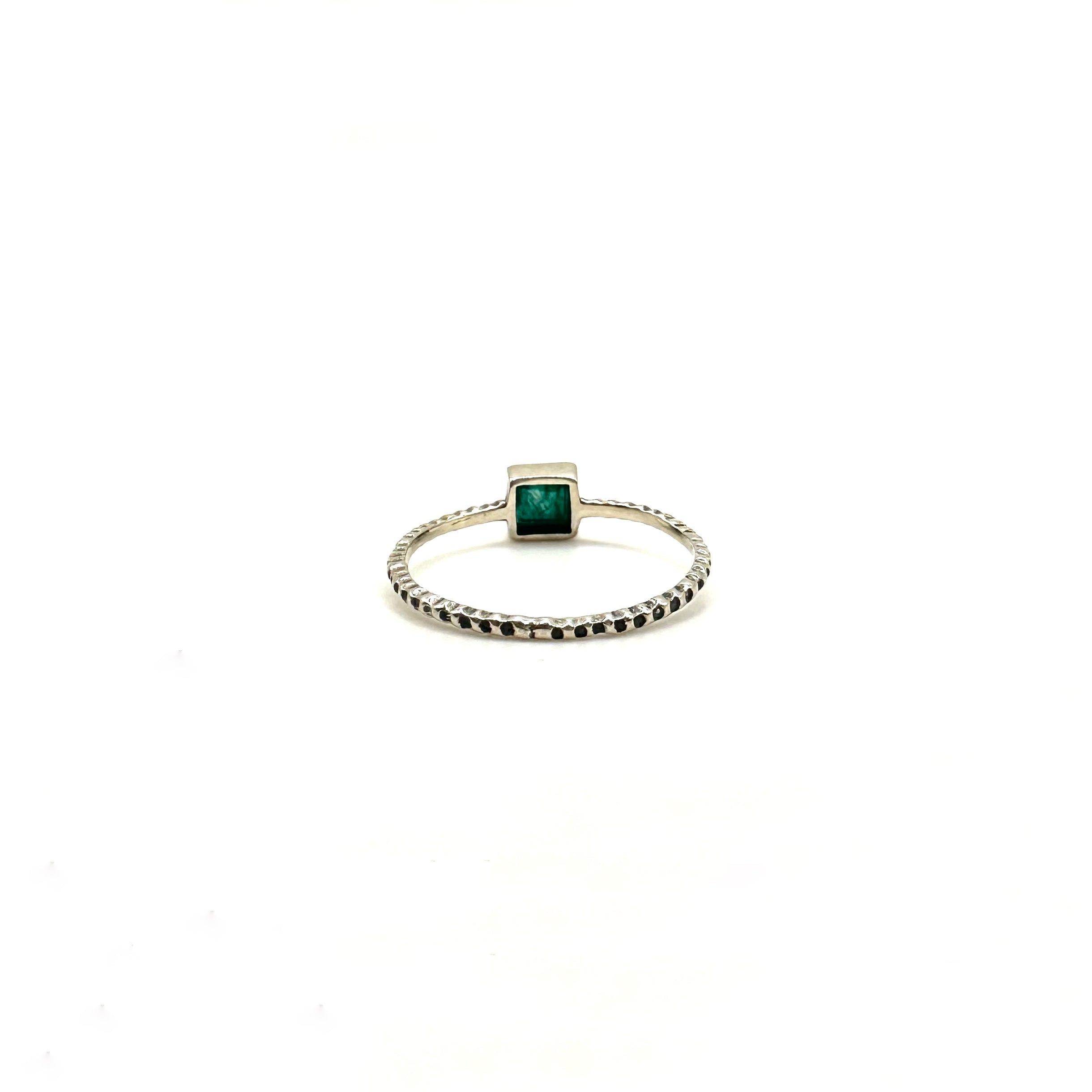 Green Square Stone Engraved Band Ring