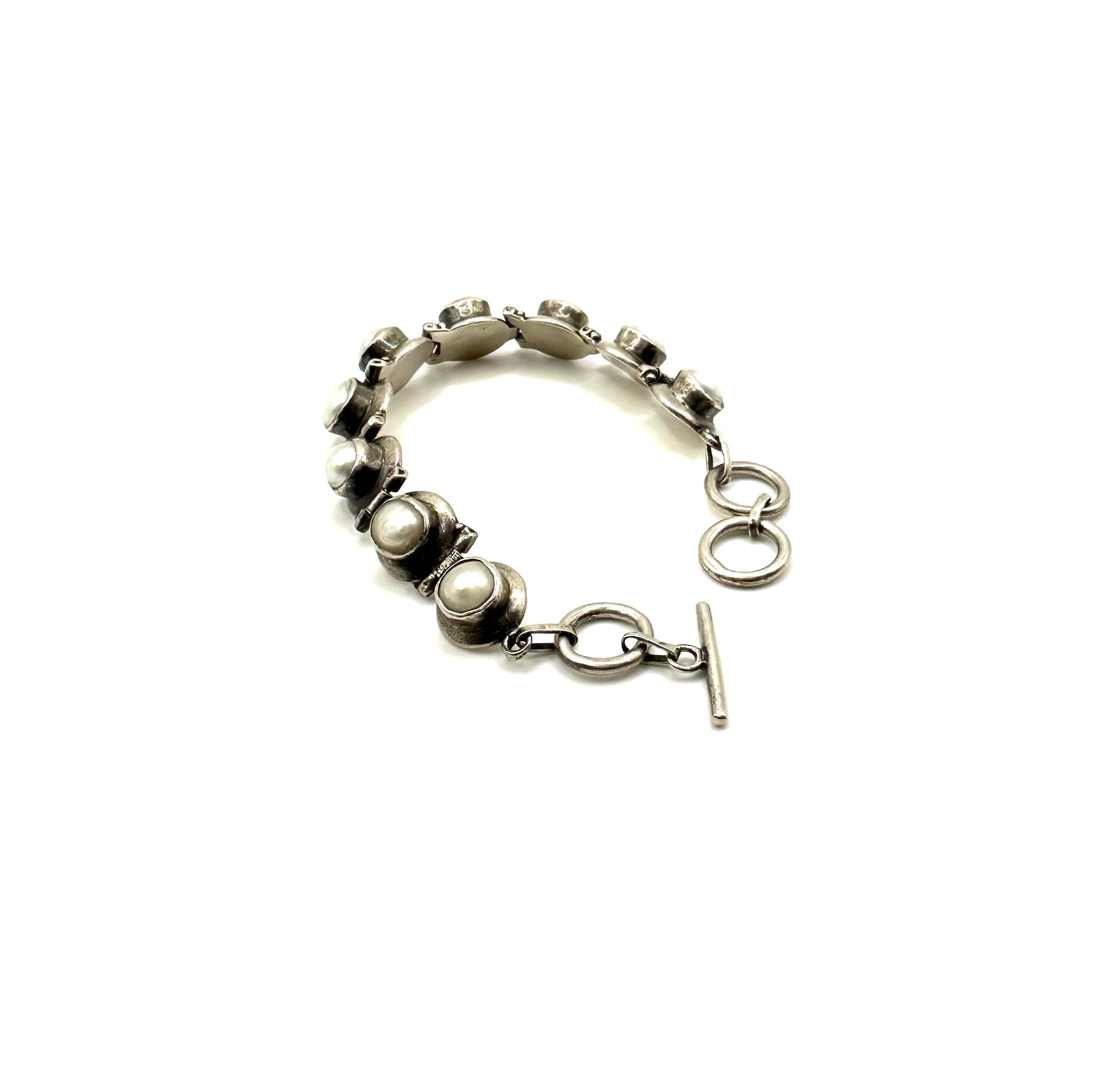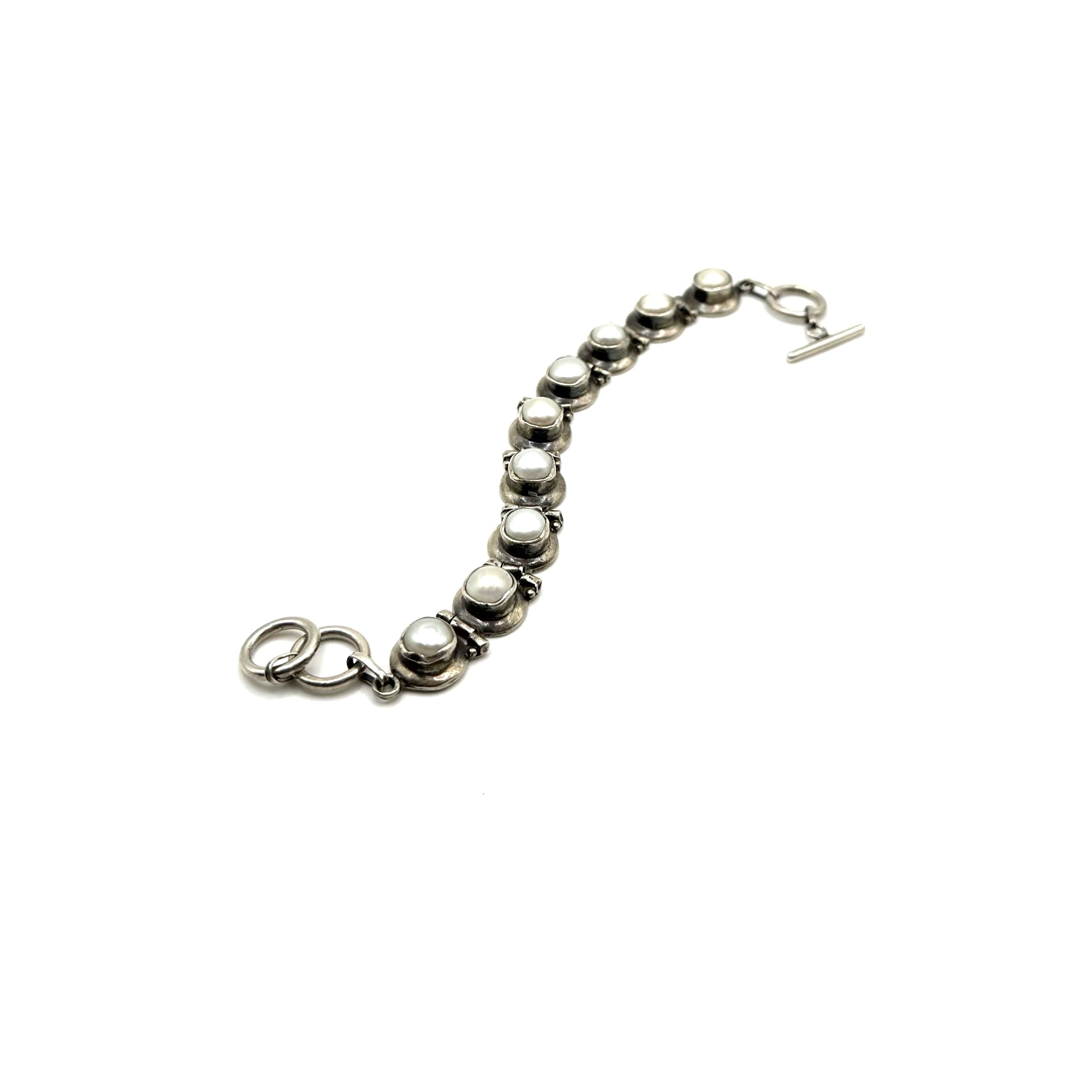Oxidized Pearl Adjustable Toggle Bracelet