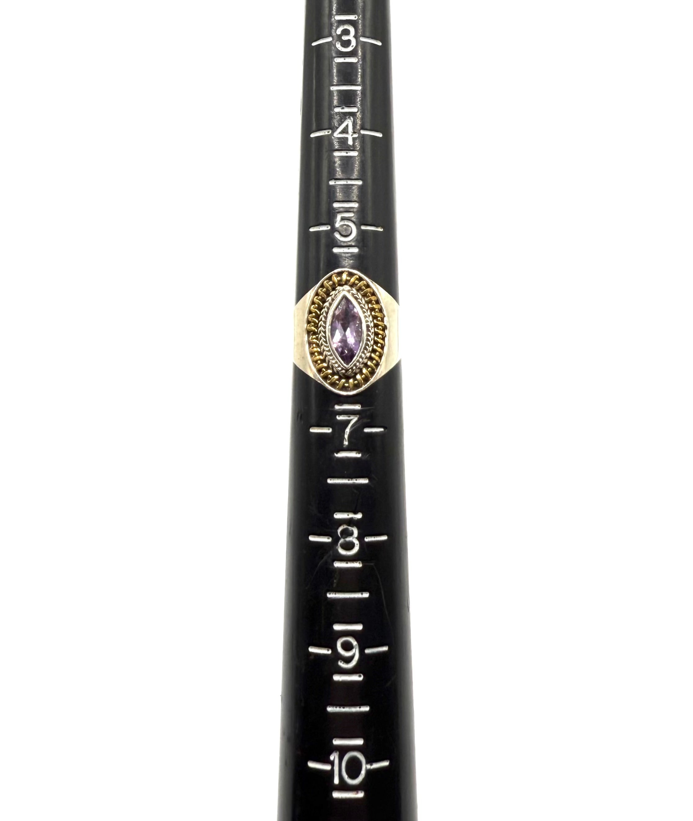 Two Tone Detailed Amethyst Ring