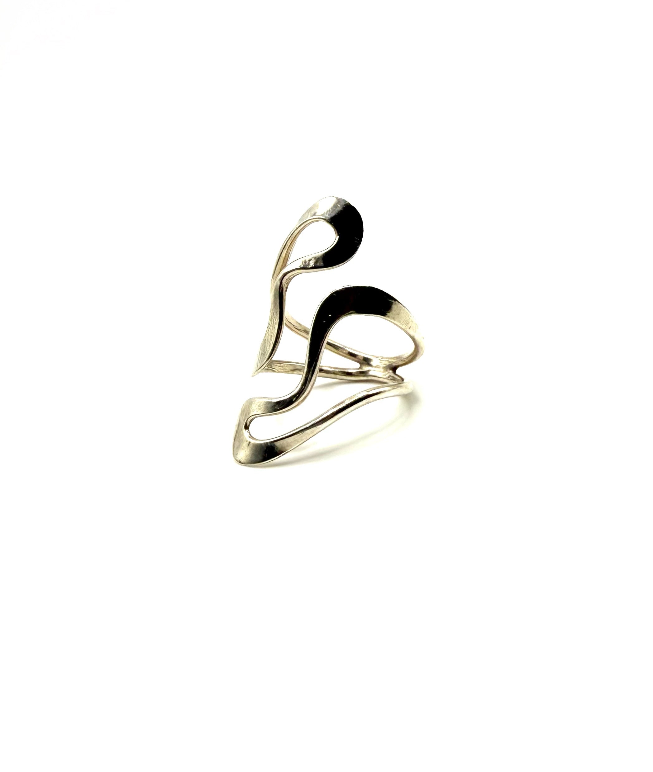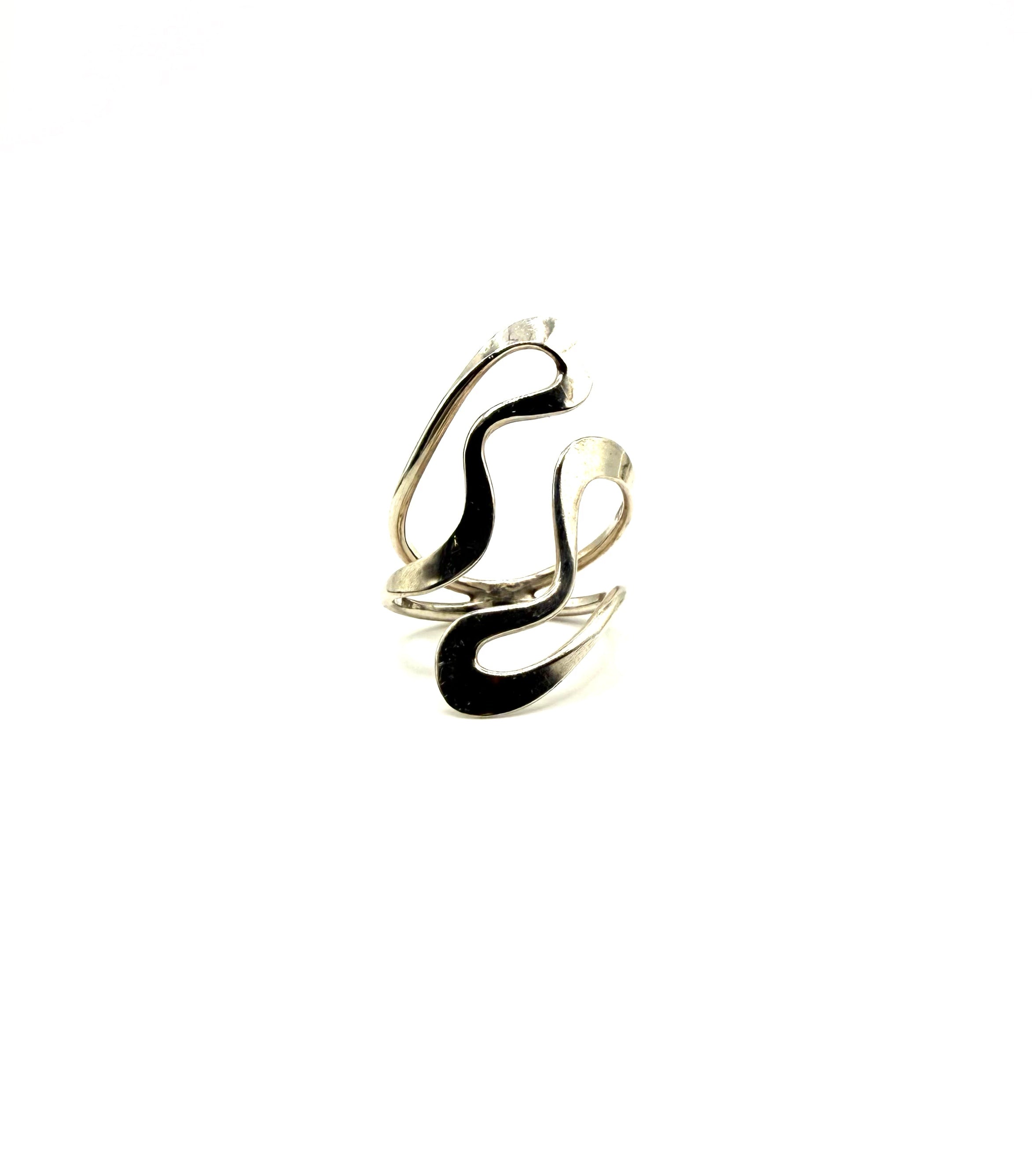 Vintage MEXICO TAXCO ORVELO Wavy Open Work Bypass Ring